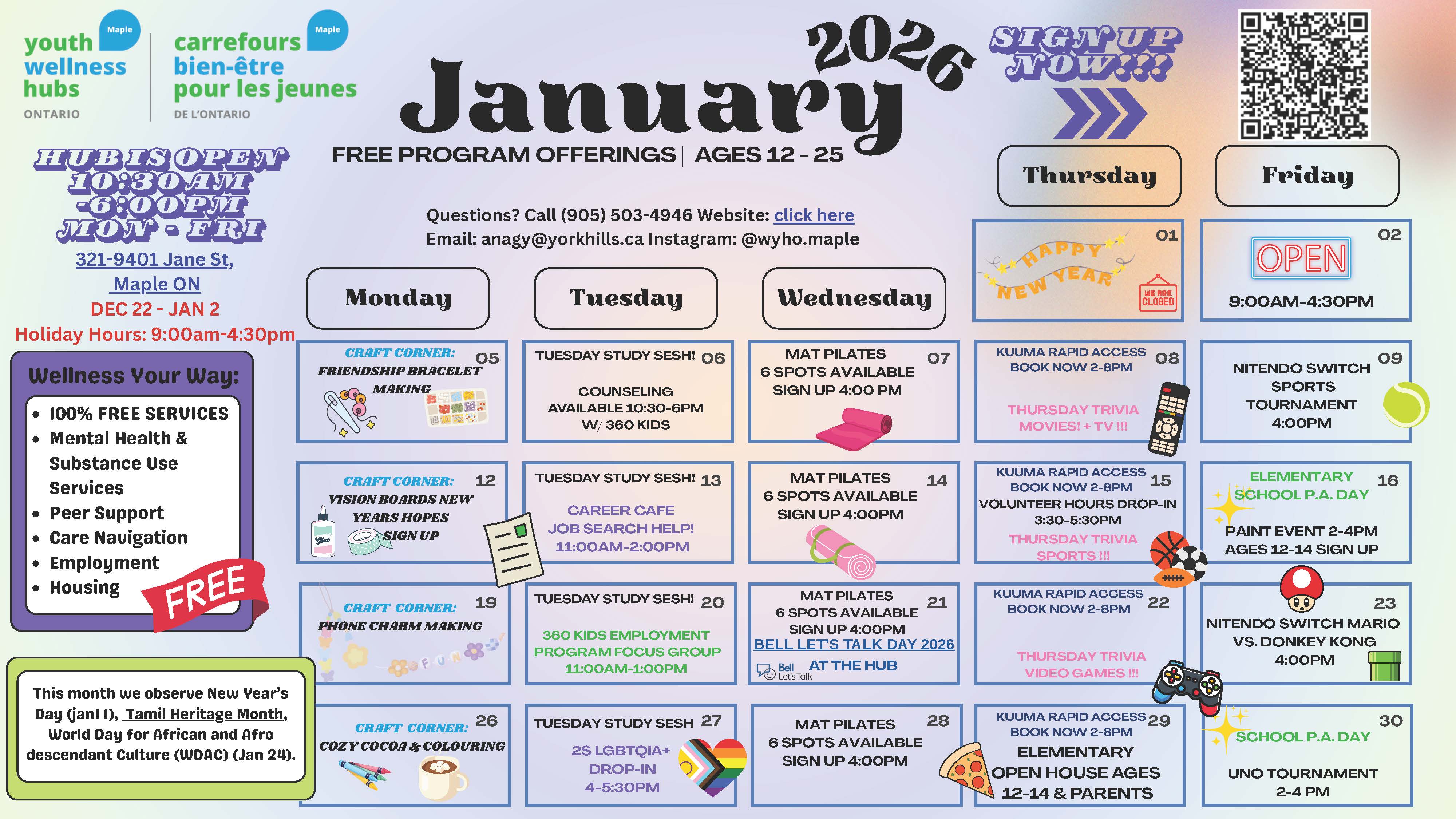Bienvenue au Carrefour bien-être pour les jeunes du Maple!