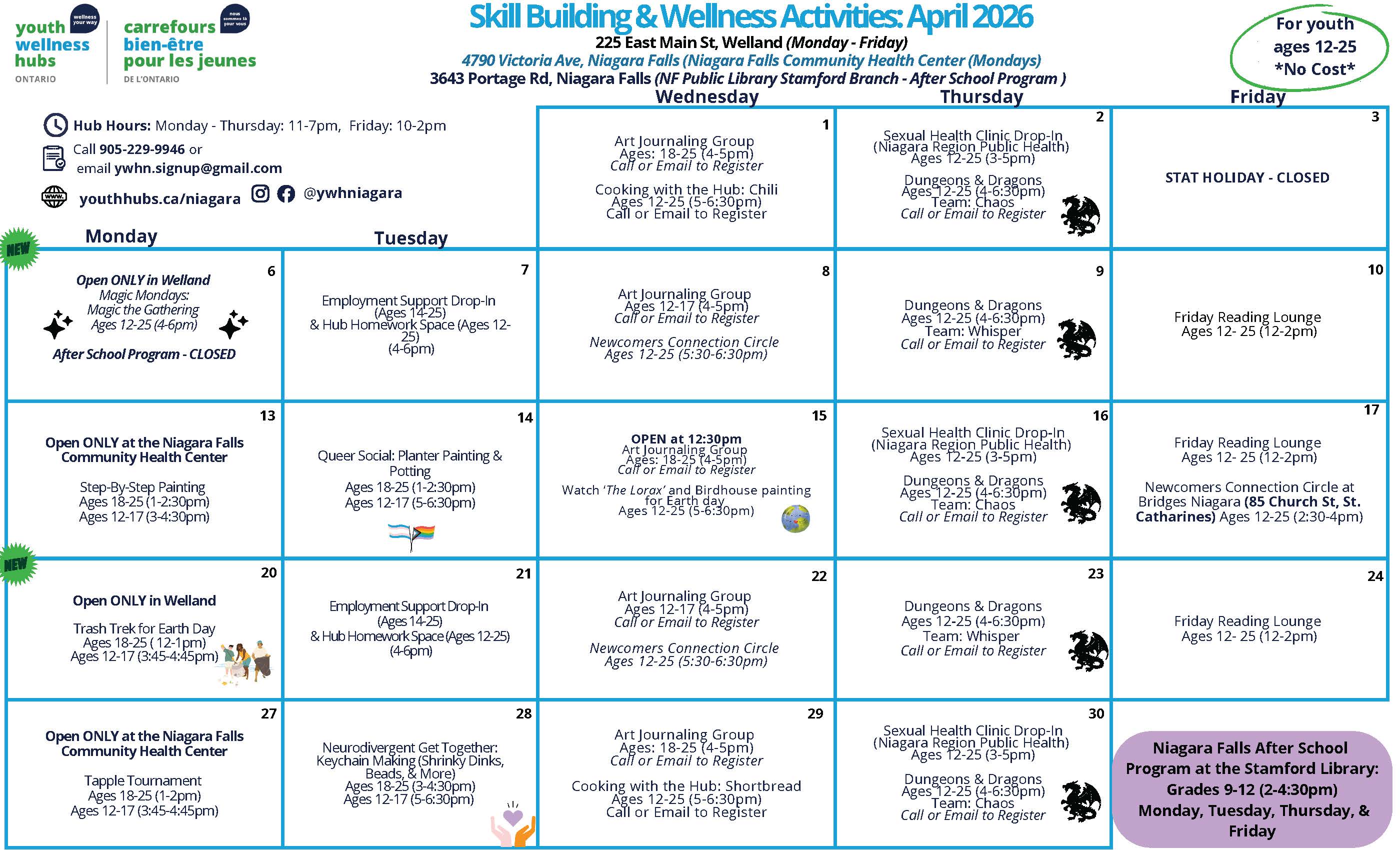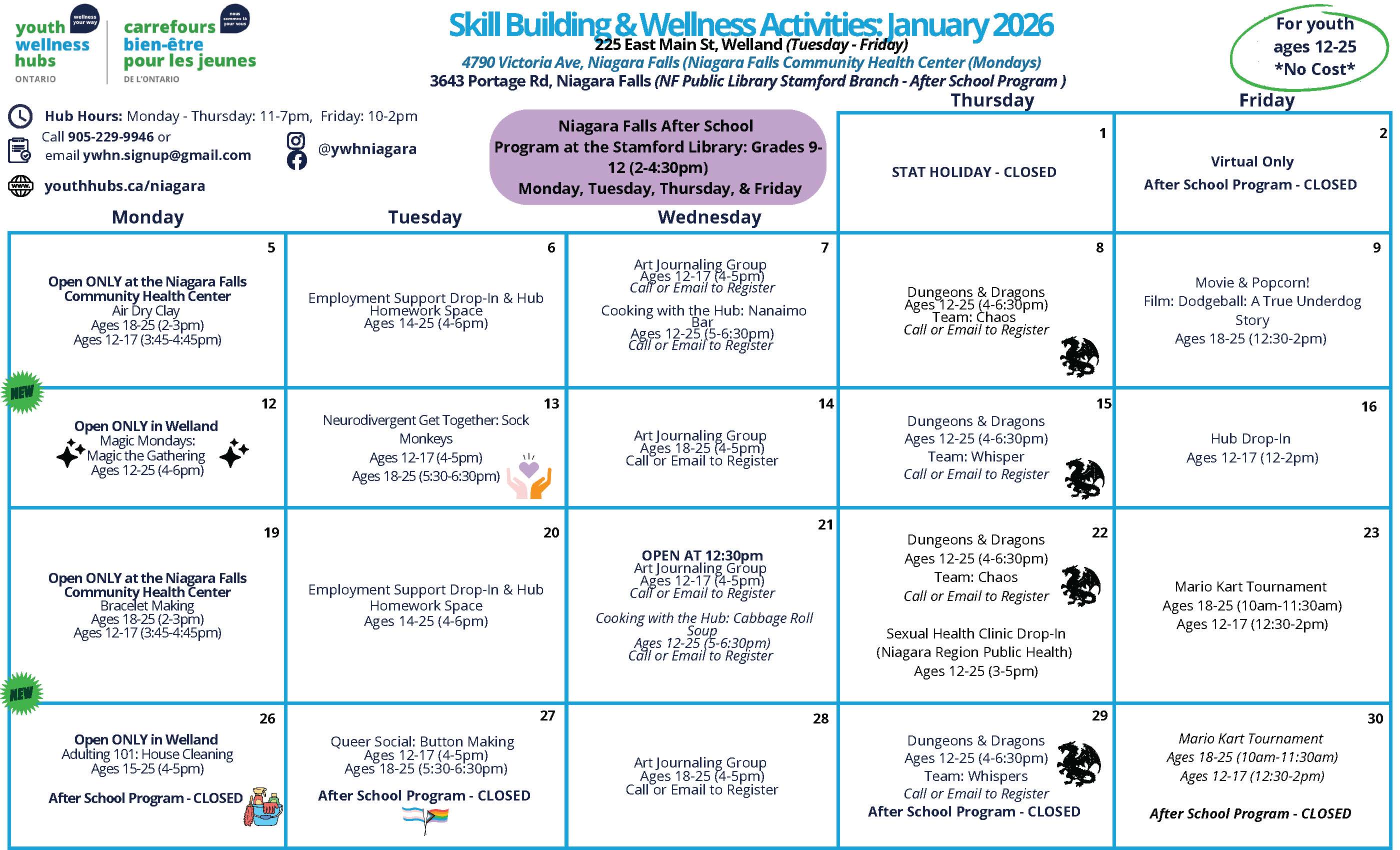 Learn more about the Youth Wellness Hub Niagara Region on social media:
